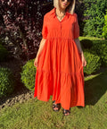 La robe JASMINE en coton allie confort et élégance avec sa coupe légèrement évasée. Le tissu doux et léger vous offre une liberté de mouvement absolue. Parfaite pour toutes occasions la beige est très chic quand à la orange est décontracté.