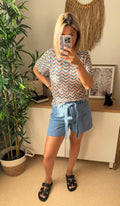 Le short LILY est parfait pour les journées d'été chaudes. Fabriqué à partir de coton de haute qualité, il offre une sensation douce et respirante pour un confort optimal. Avec sa longueur courte, il est idéal pour les activités extérieures ou même pour se détendre à la maison.