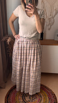 JupLa jupe LISA est conçue avec un élastique à la taille pour un ajustement confortable. Son design long et ample, associé à un imprimé à carreaux dans des tons pastel, offre une esthétique agréable tout en garantissant une liberté de mouvement. Cette pièce est idéale pour une utilisation quotidienne ou des occasions décontractées.